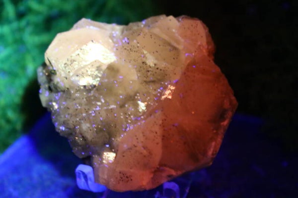 Bovendien vertoont de Calciet een spectaculaire oranje fluorescentie onder UV-licht.