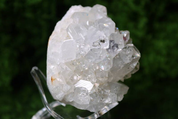 Alweer een super mooie apofyliet maar dit keer een cluster! Dit stuk heeft een heleboel punten die allemaal helder zijn, en, in sommige zitten ook een regenboogje!
